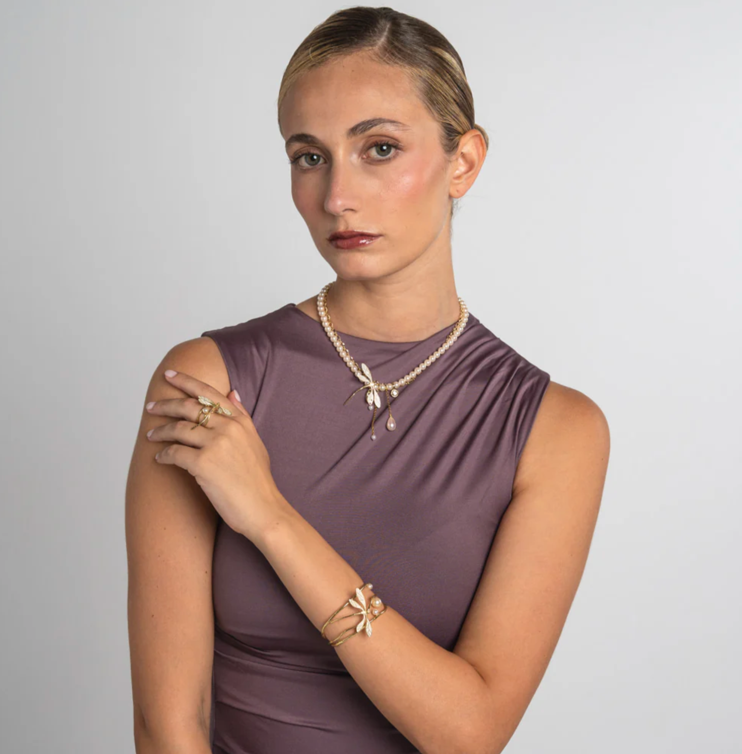 Dawn Long Necklace with Blue Tourmaline and Keshi Pearl