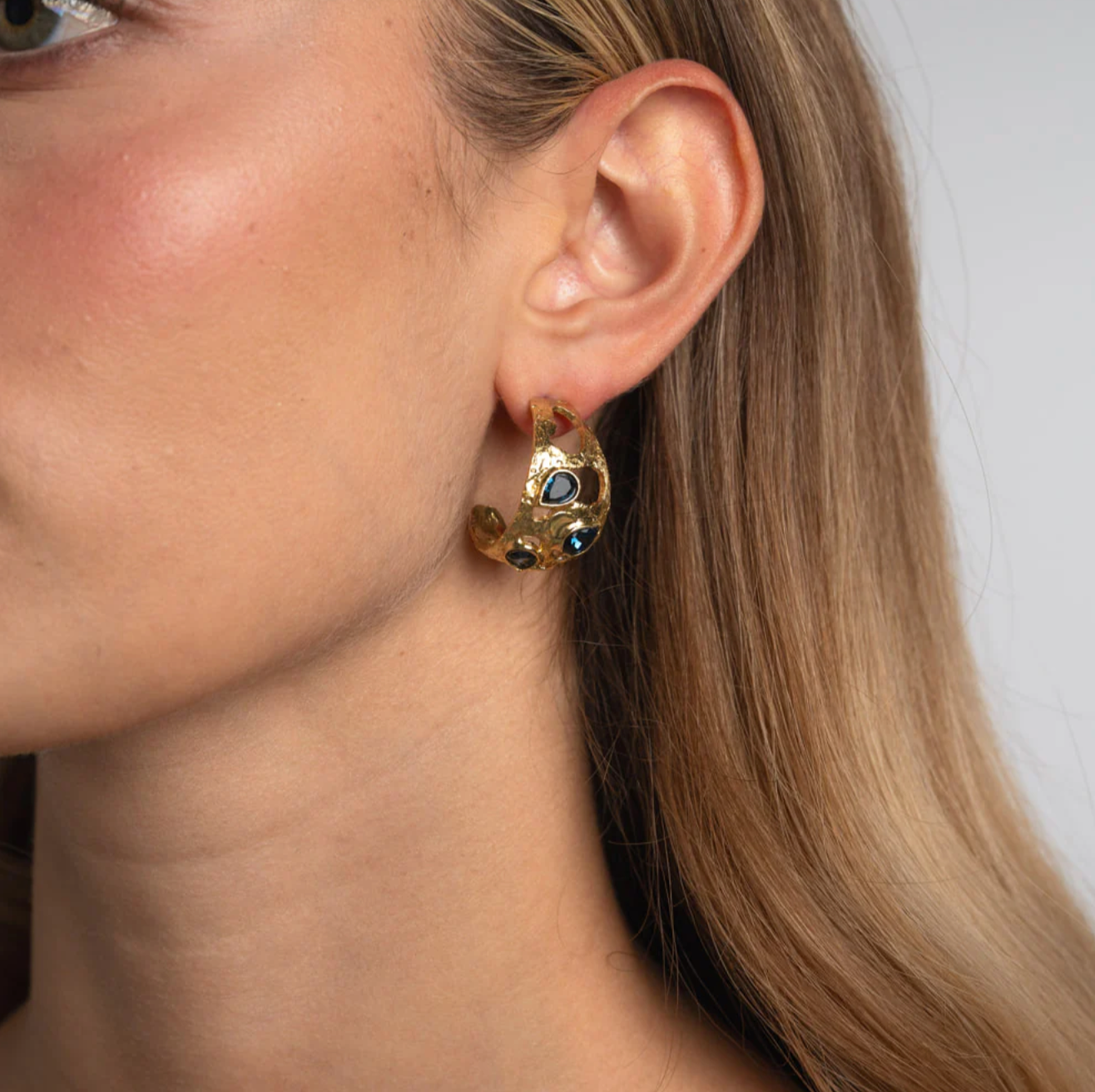 Column Light Earring — Rainbow Moonstone Draped Trio