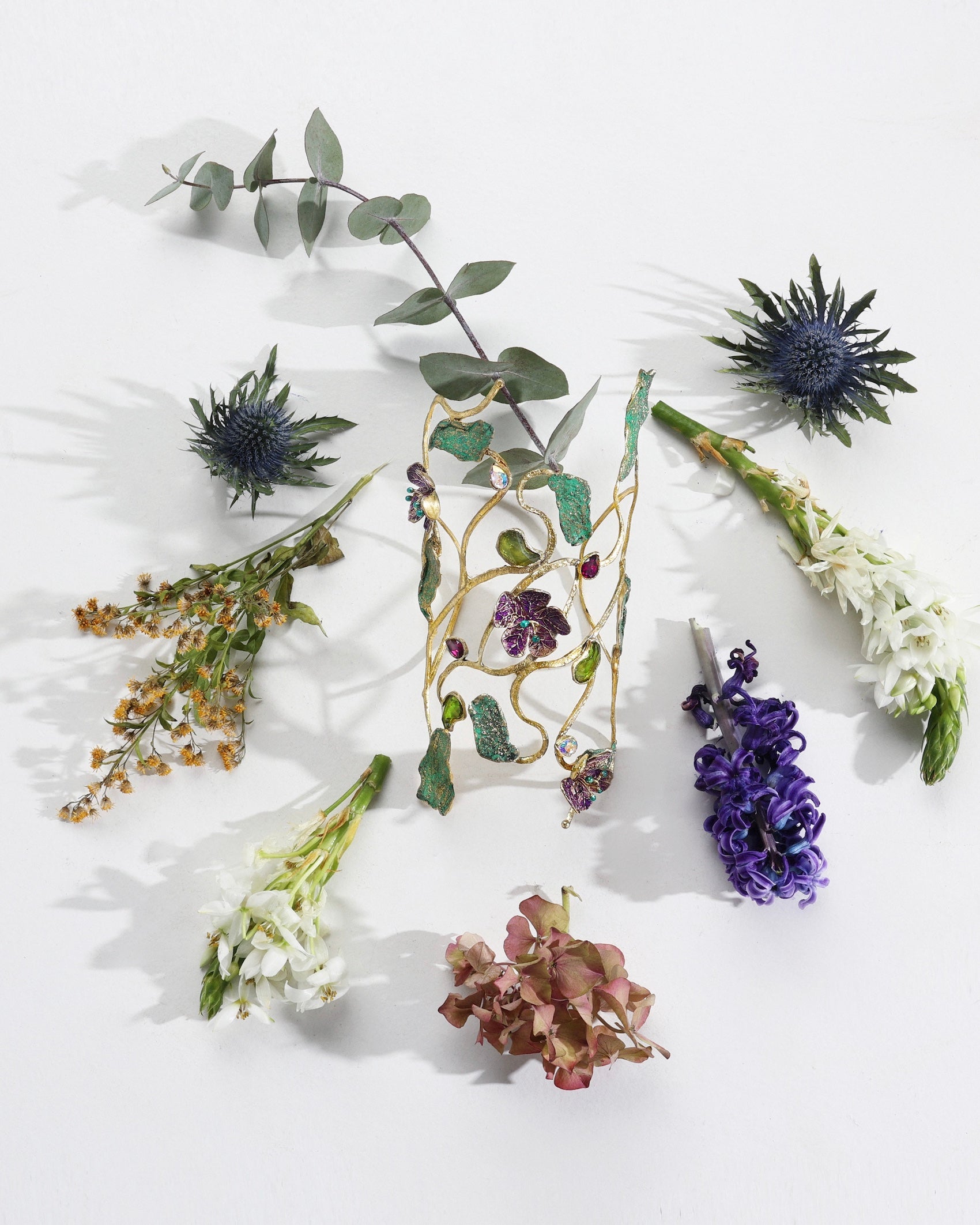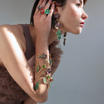 Make a captivating statement with the Floral Flair Bracelet—an artful blend of green oxidation, enamel details, and multi-color Preciosa crystals. Swirling brass vines and blossoms evoke a whimsical garden scene, while the adjustable 7" (18 cm) length ensures a comfortable fit. Hypoallergenic, nickel-free, and designed for long-lasting wear, it’s a show-stopping piece. Complete the look with our long “Floral Flair” earrings, ring, and choker.
