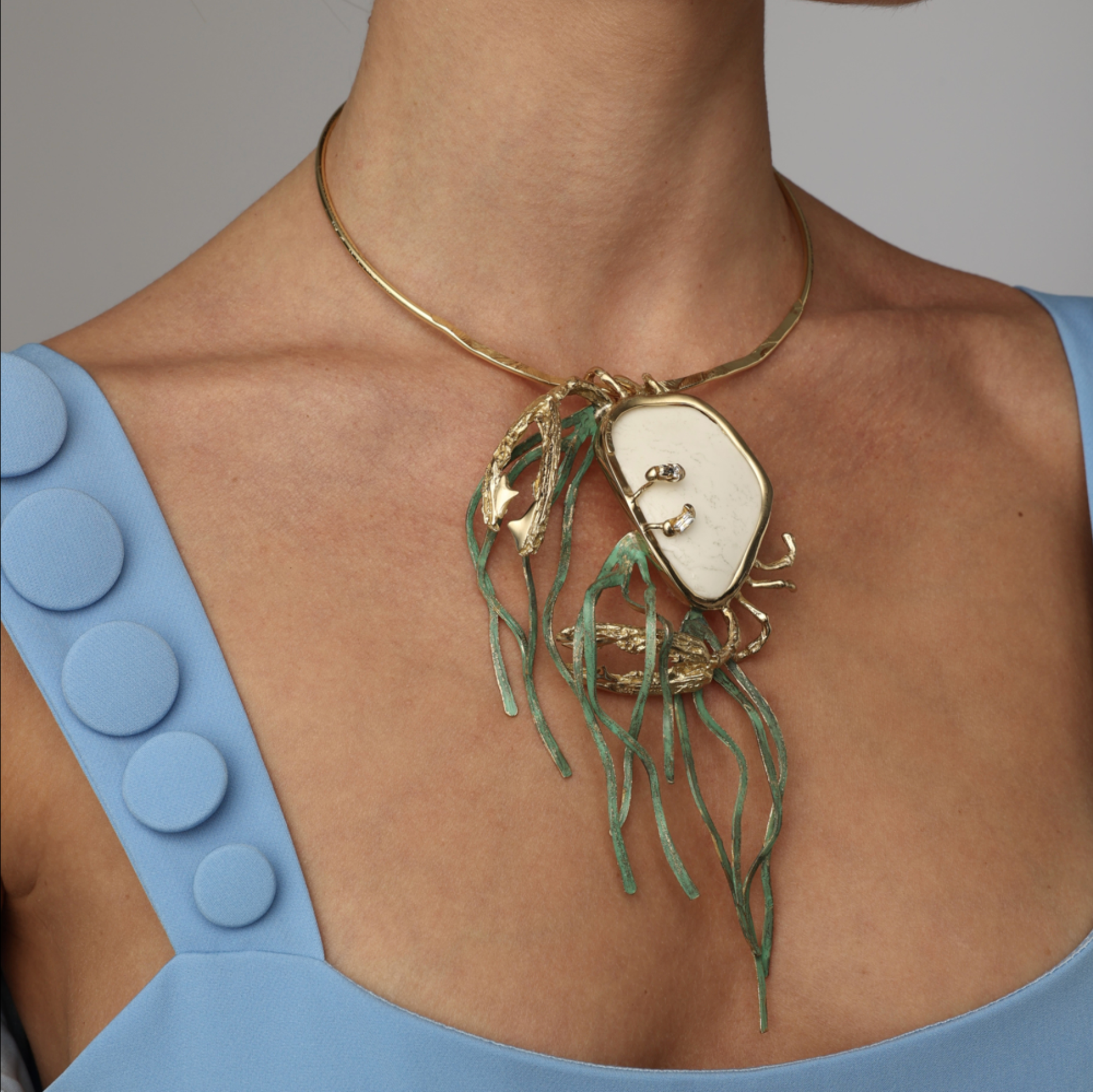 White Stone Crab Necklace