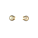 A luminous, high-quality freshwater pearl takes center stage in this sculptural design, crowned by a graceful arc of oxidized sterling silver and gold-plated detailing. The bold contrast between soft glow and dark metal gives these studs a refined, antique soul—crafted with exceptional attention to detail and balance.