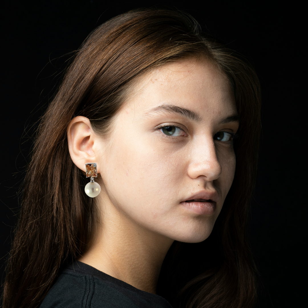 Softly radiant with a warm glow, the Élise Studs feature a peach-toned faceted stone paired with a lustrous natural freshwater pearl and a delicate white accent. Set in sterling silver with butterfly backs, this timeless silhouette adds a gentle touch of elegance — feminine, refined, and endlessly wearable.