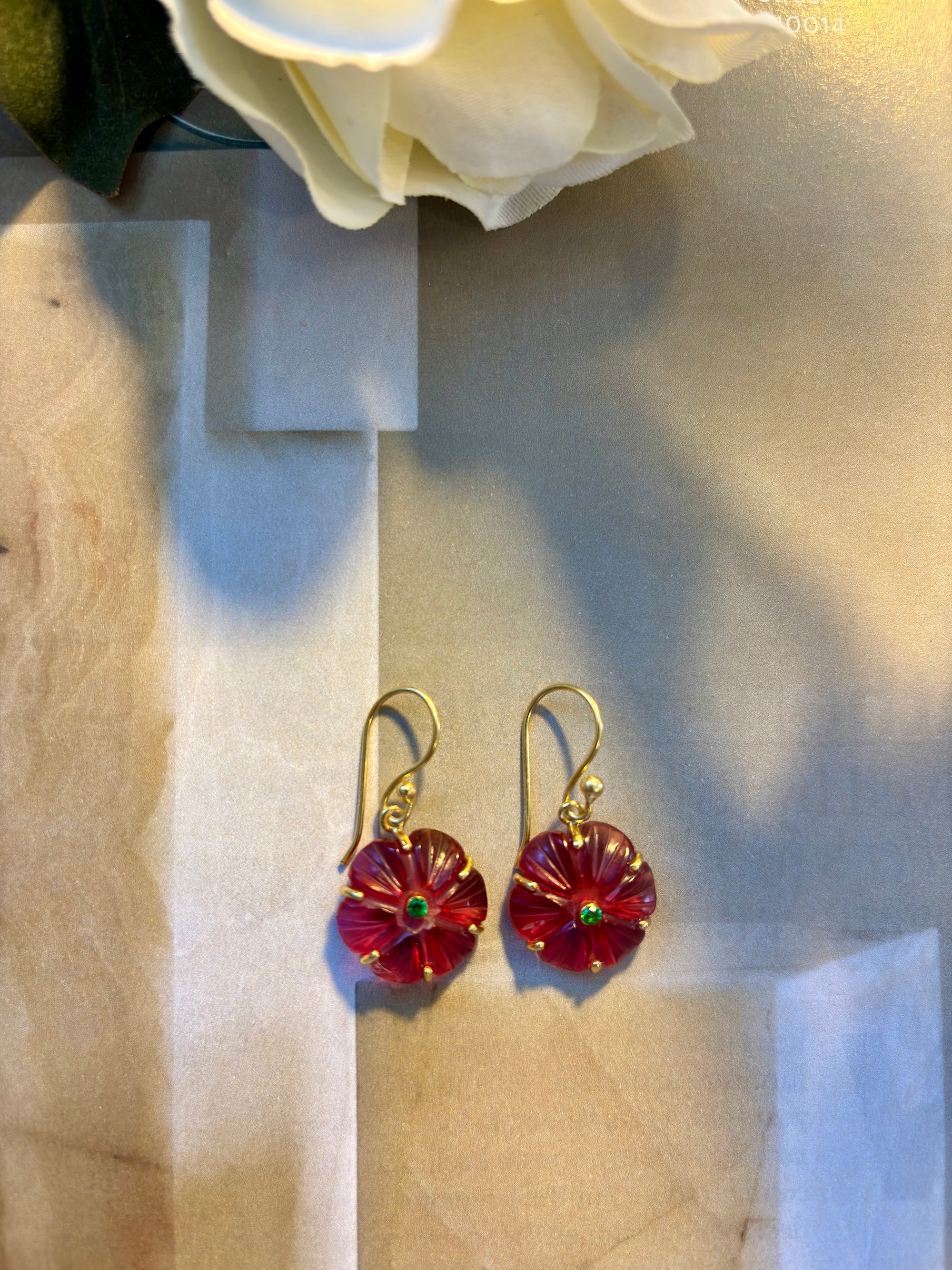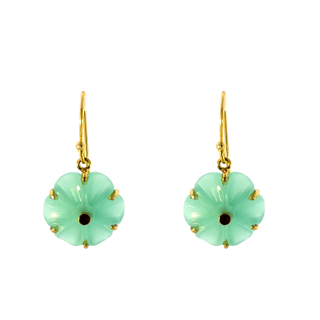 - Hand-Cut Chalcedony Flower – available in lavender, rose pink, or turquoise