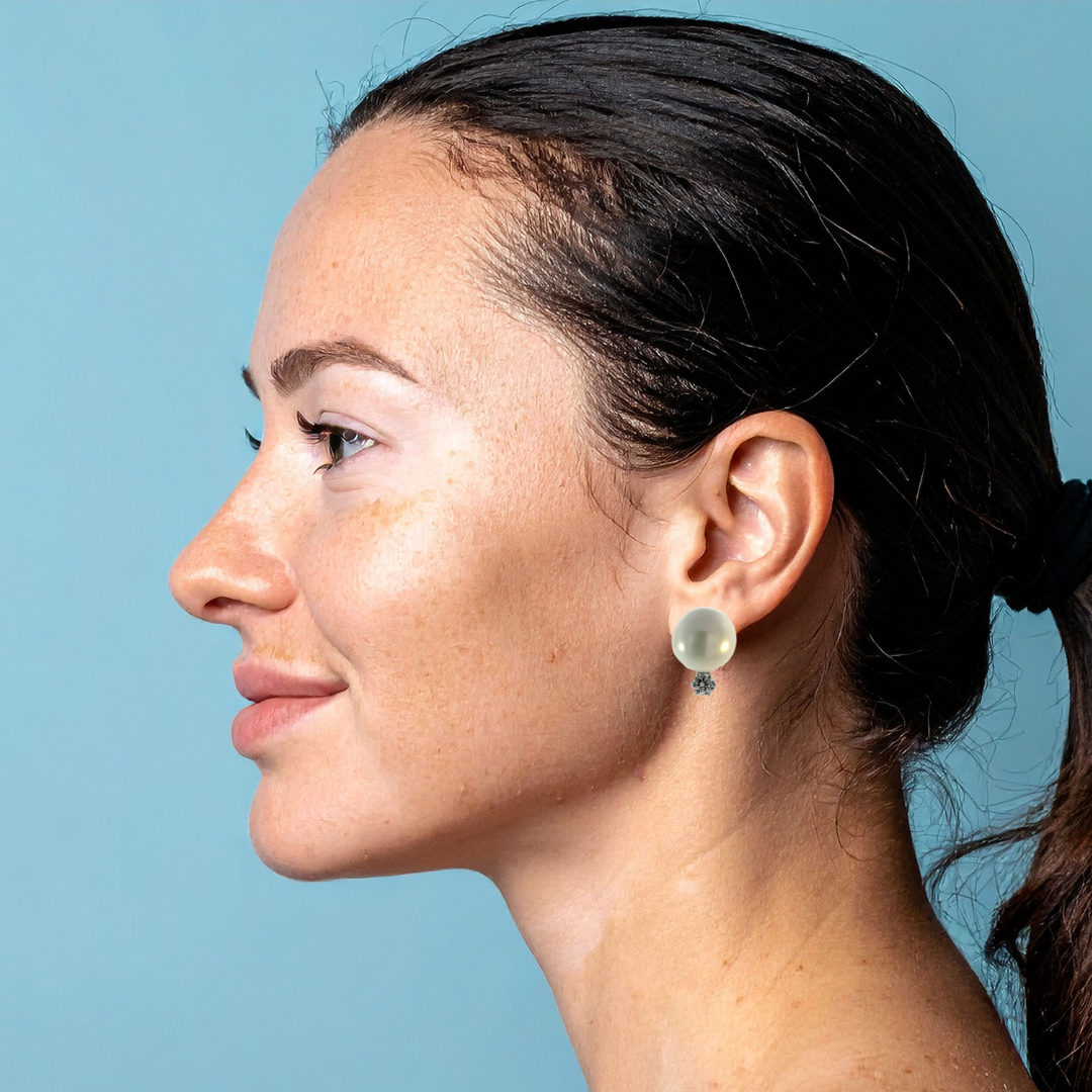 Quietly elegant with a whisper of sparkle. This refined pair from the Lucienne series features a luminous 15mm freshwater pearl accented by a petite, precision-cut cubic zirconia — just enough shimmer to catch the light with grace. Set in rhodium-plated sterling silver and finished with our signature omega backs for a comfortable, lifted fit.
