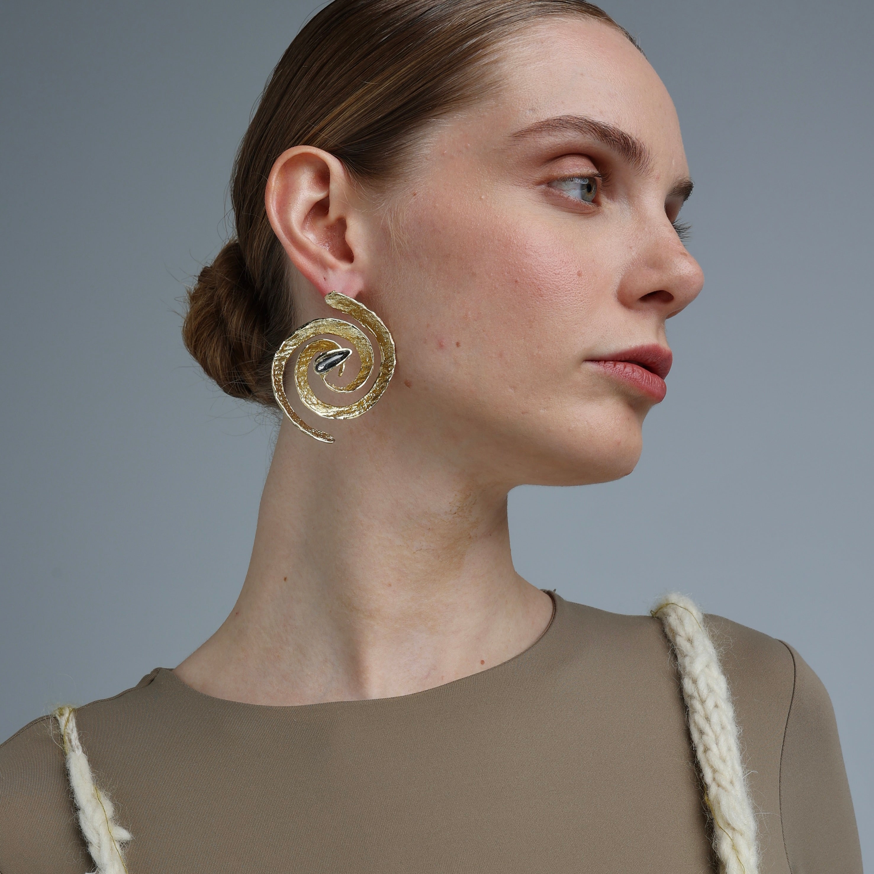A captivating blend of modern sculpture and statement flair, the Chantal Spiral Earrings feature brass coils artfully curved into a swirling silhouette. Each earring frames a dark teardrop crystal, adding a touch of moody elegance. Hypoallergenic, nickel-free, and built for lasting wear, they’re perfect for those seeking a bold, artful addition to their jewelry collection.
