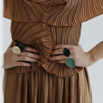 The Circles of Trust Ring in gold with green oxidation carries the soul of history within its design. Its handcrafted brass frame, touched with a weathered patina, creates a vintage aura that feels both raw and refined. The interplay of gold and green evokes age-old treasures unearthed, making it the perfect piece for those who embrace individuality and depth in their style.