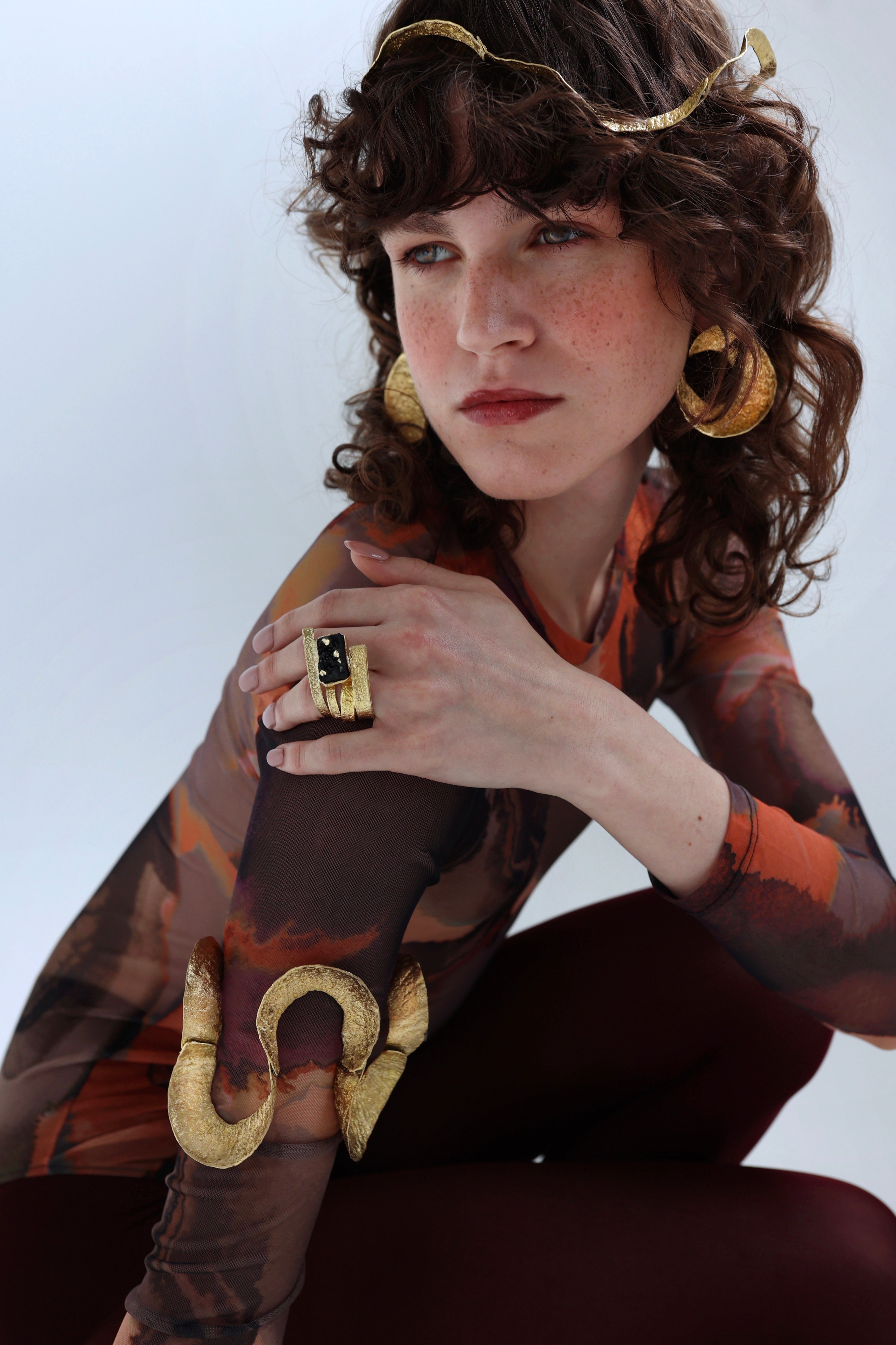 Our Hermione bracelet encapsulates the epitome of contemporary coolness with its unique shape and style. It exudes an unconventional charm that sets it apart from the rest. It offers versatility with its adjustability, allowing you to wear it on your wrist, up your arm, or even around your ankle.