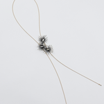 The slender wire-like chain wraps or drapes effortlessly, echoing the quiet power of constellations in orbit. A piece that feels both sculptural and ethereal, ready to elevate even the simplest neckline.