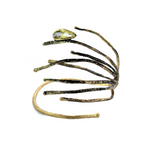 A striking counterpart to the India design, this cuff is rendered in blackened brass with slender branches fanning gracefully from one side. A single white crystal punctuates the open end, lending a crisp flash of brilliance. Its adjustable design and matte, brushed texture complete the bold yet refined aesthetic.