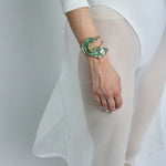 Embrace a fluid sense of style with the Paloma Flow Cuff, sculpted in brass and finished with a captivating green oxidation. Its swirling silhouette wraps gracefully around the wrist, while the adjustable design ensures a comfortable fit. Hypoallergenic, nickel-free, and built for lasting wear, it’s a bold statement piece that echoes nature’s organic curves.