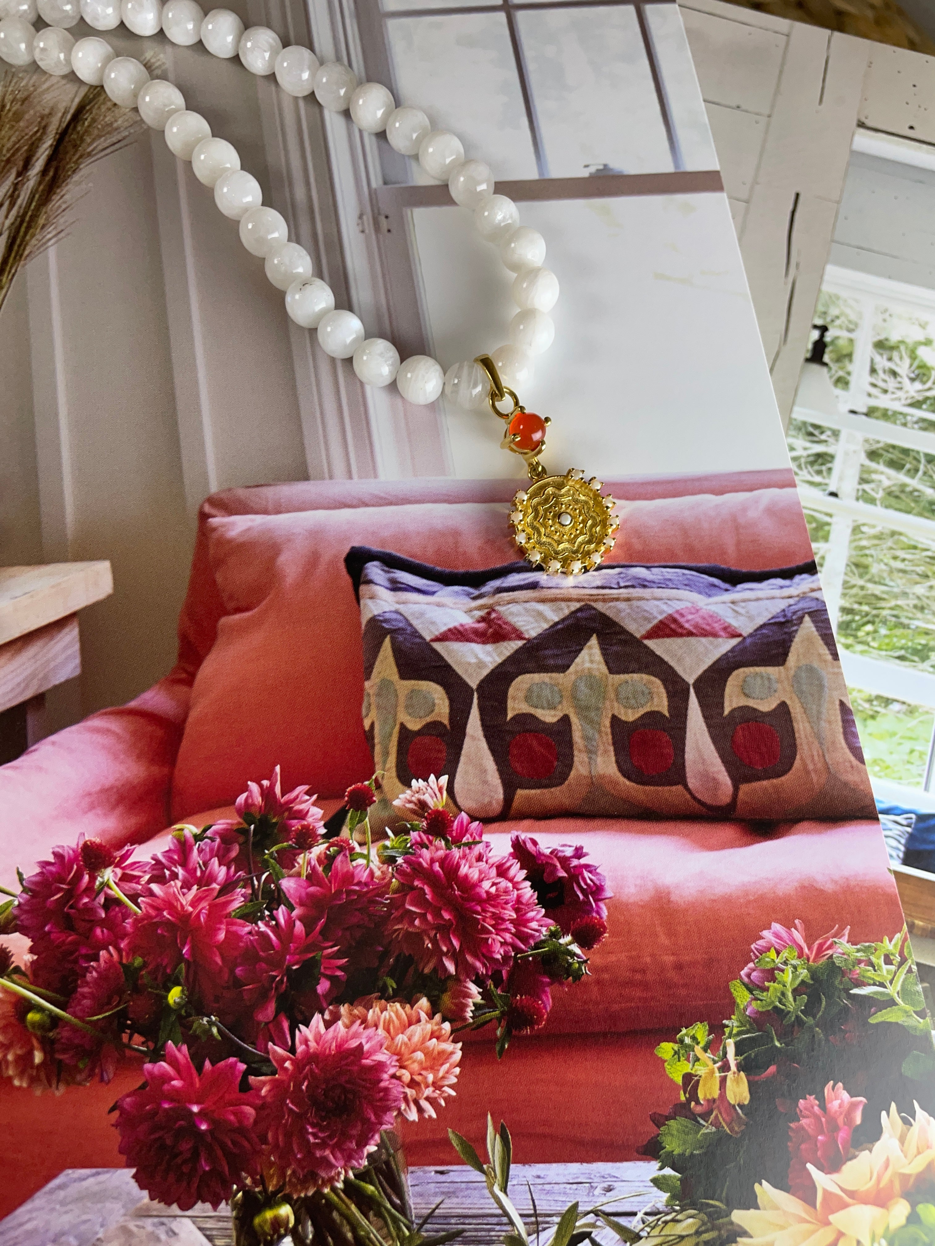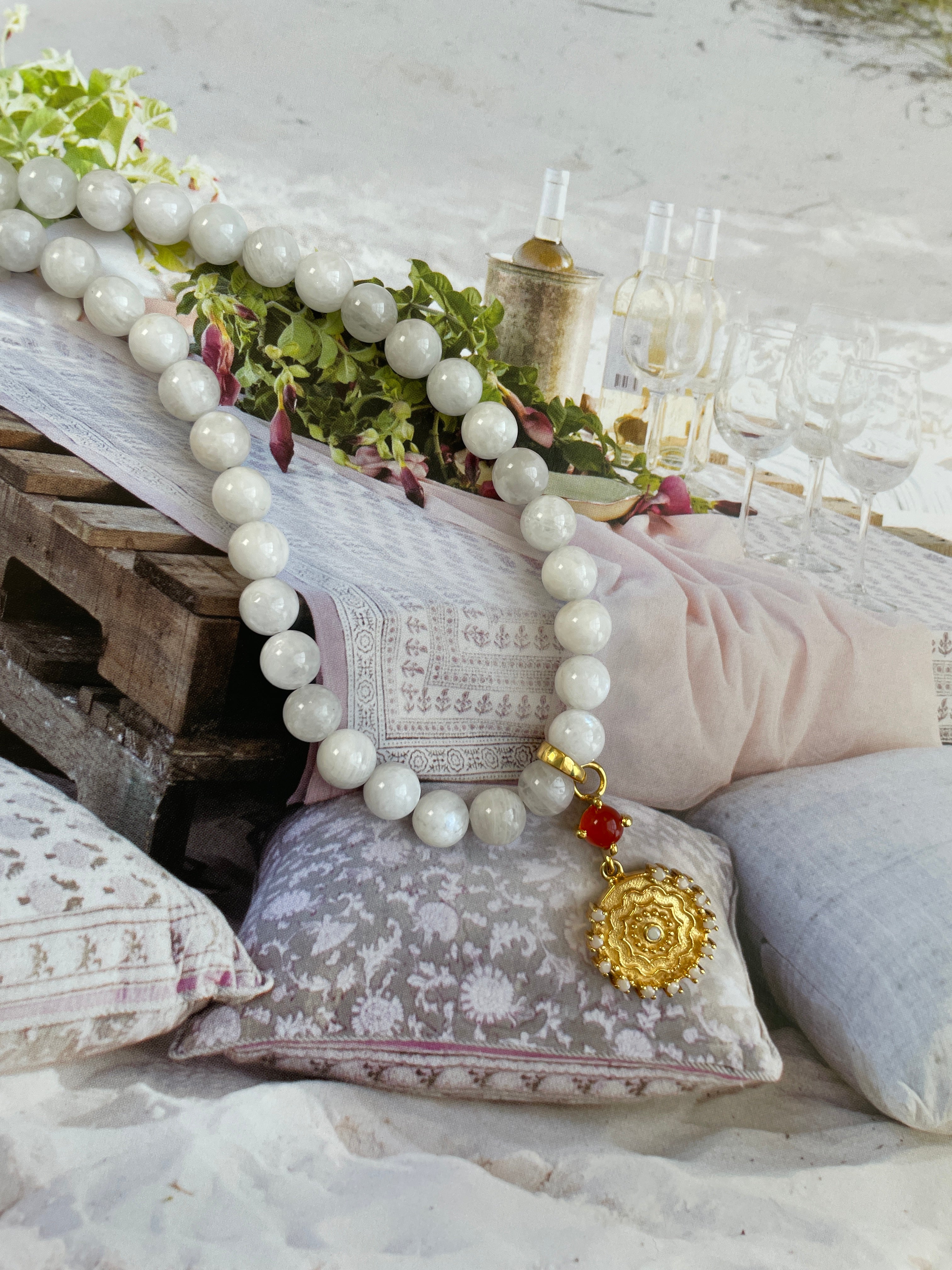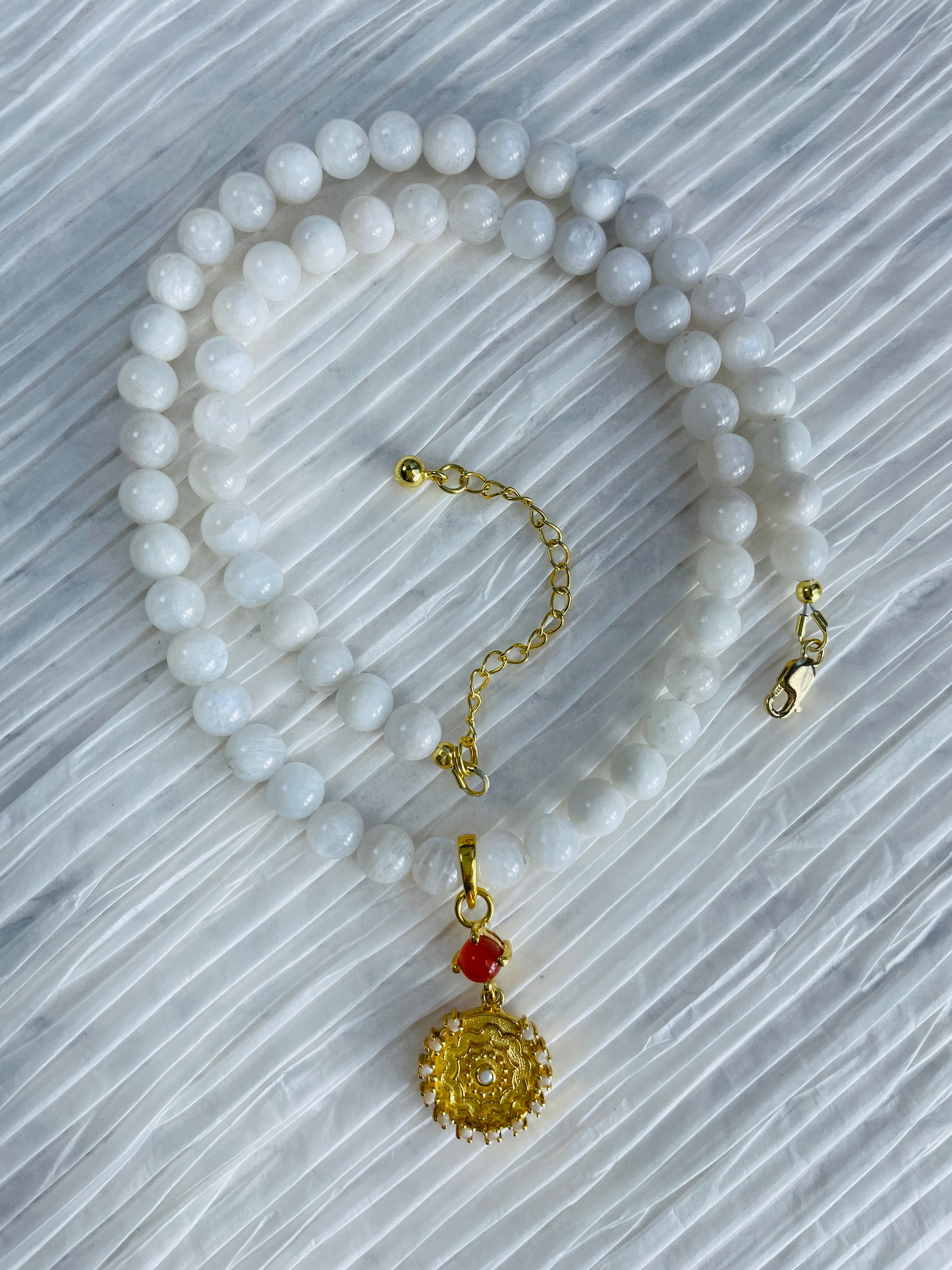 Leilani Necklace with Moonstone, Carnelian and Pearl