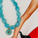 Handmade in our studio, this 17-inch necklace features soothing amazonite paired with a gold-filled barrel key detail. The distinctive rhomb pendant, set in 18K gold vermeil sterling silver, showcases a captivating fusion of amazonite with a tiny amethyst center stone—offering a subtle nod to coastal elegance.