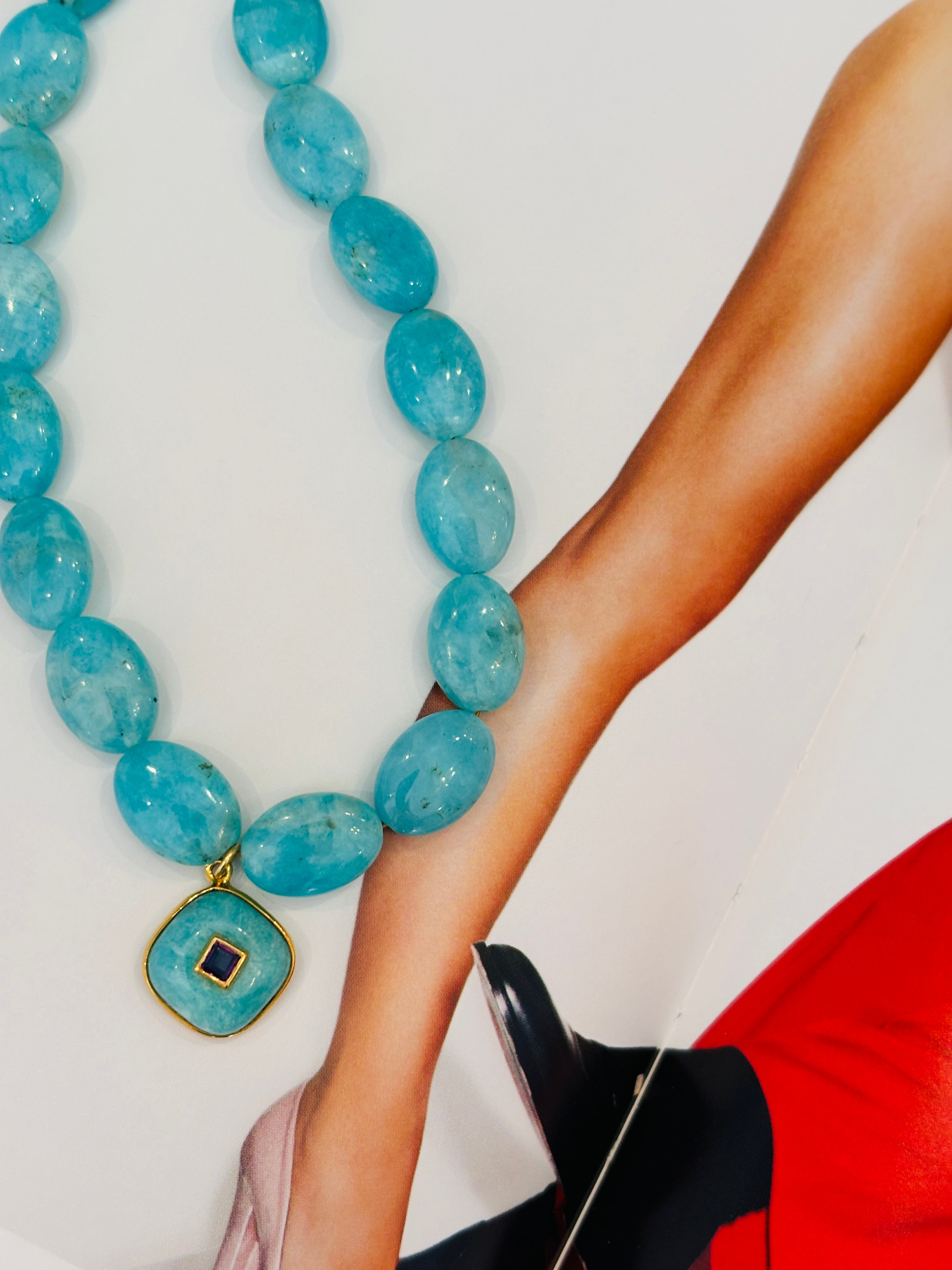 - Rhomb Pendant with Amazonite & Amethyst – an enchanting centerpiece set in 18K gold vermeil sterling silver