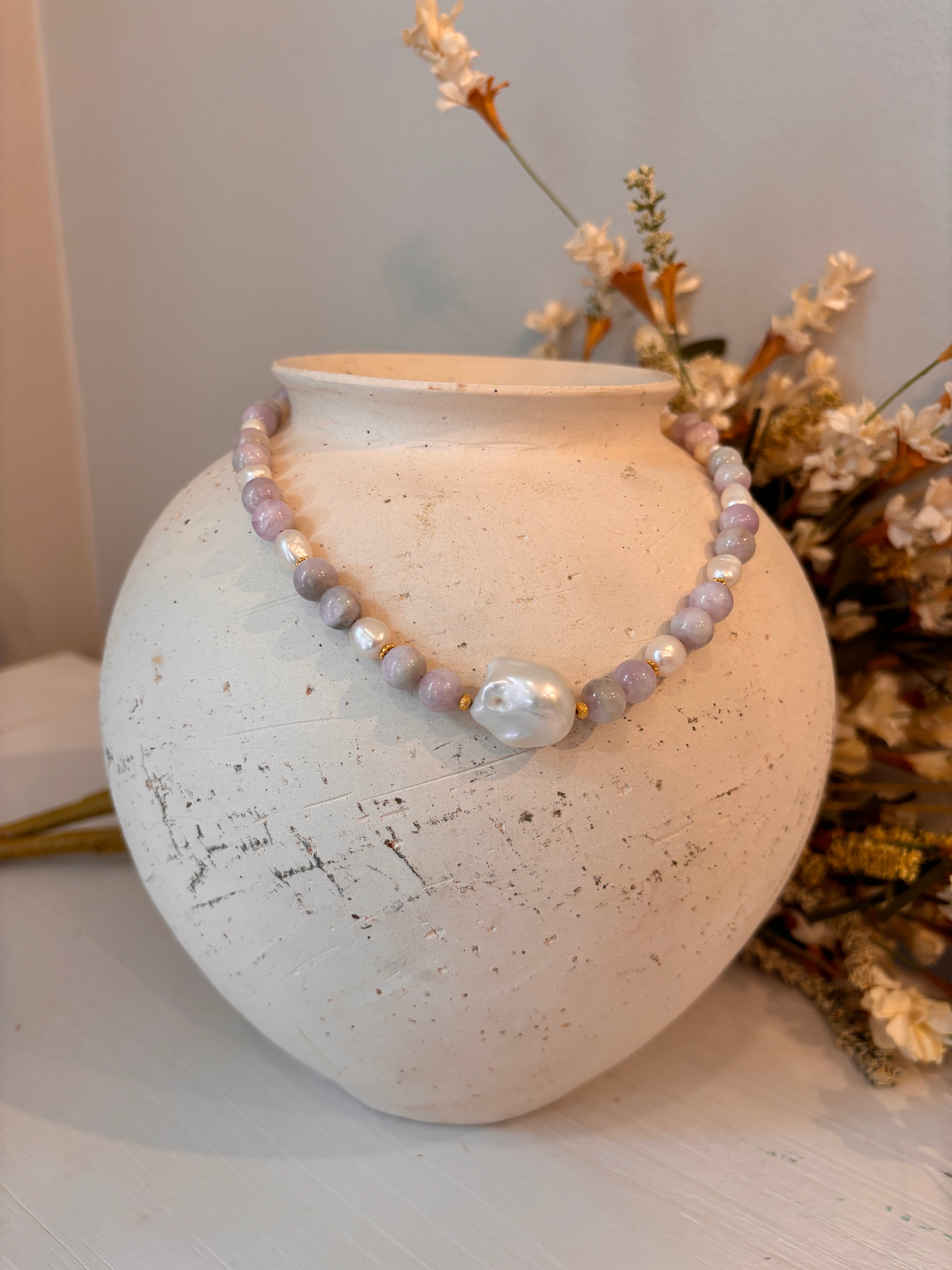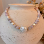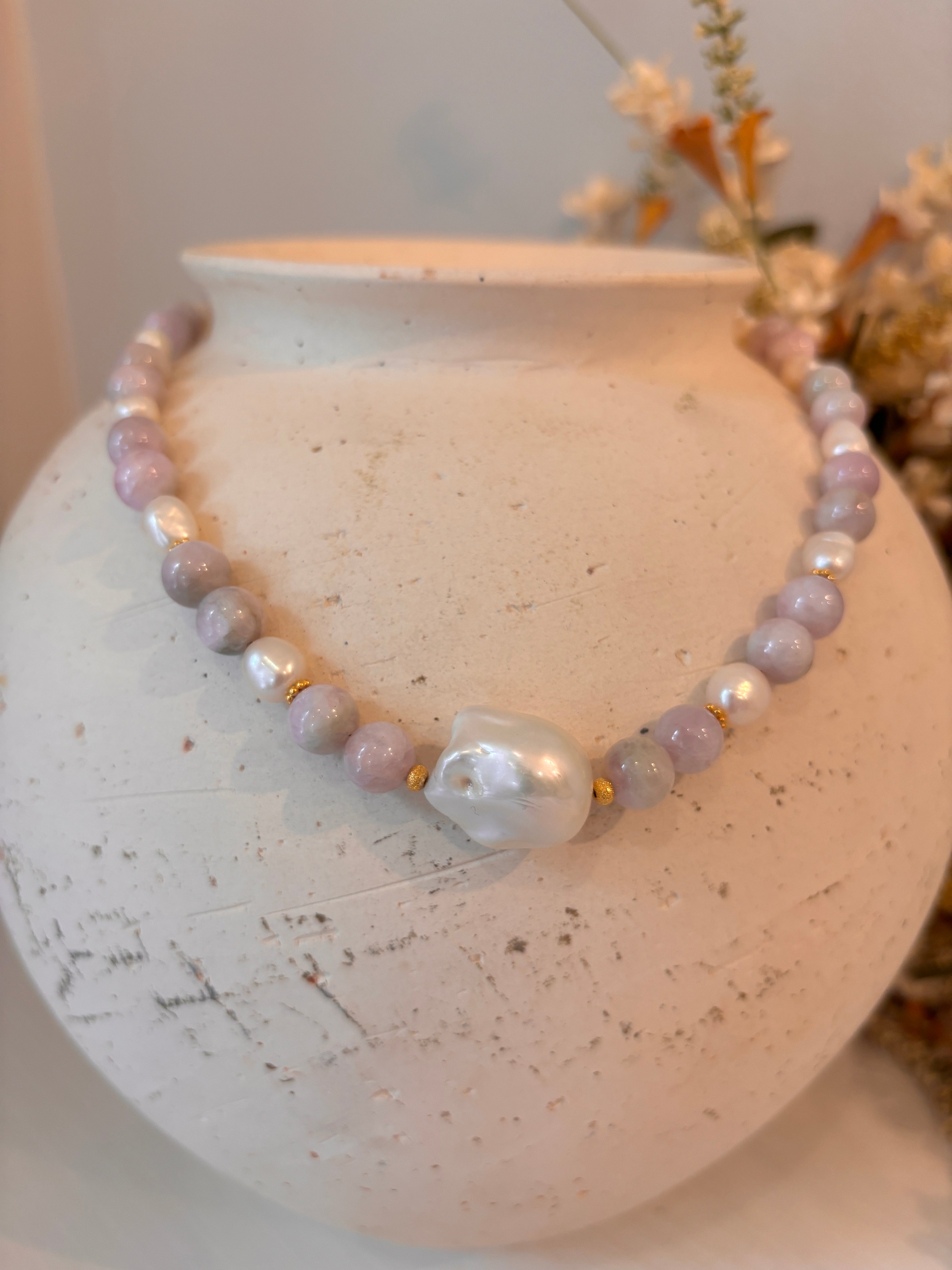 - Material: Kunzite- stones size - 8 mm & Natural Fresh Water Pearls - 6 mm