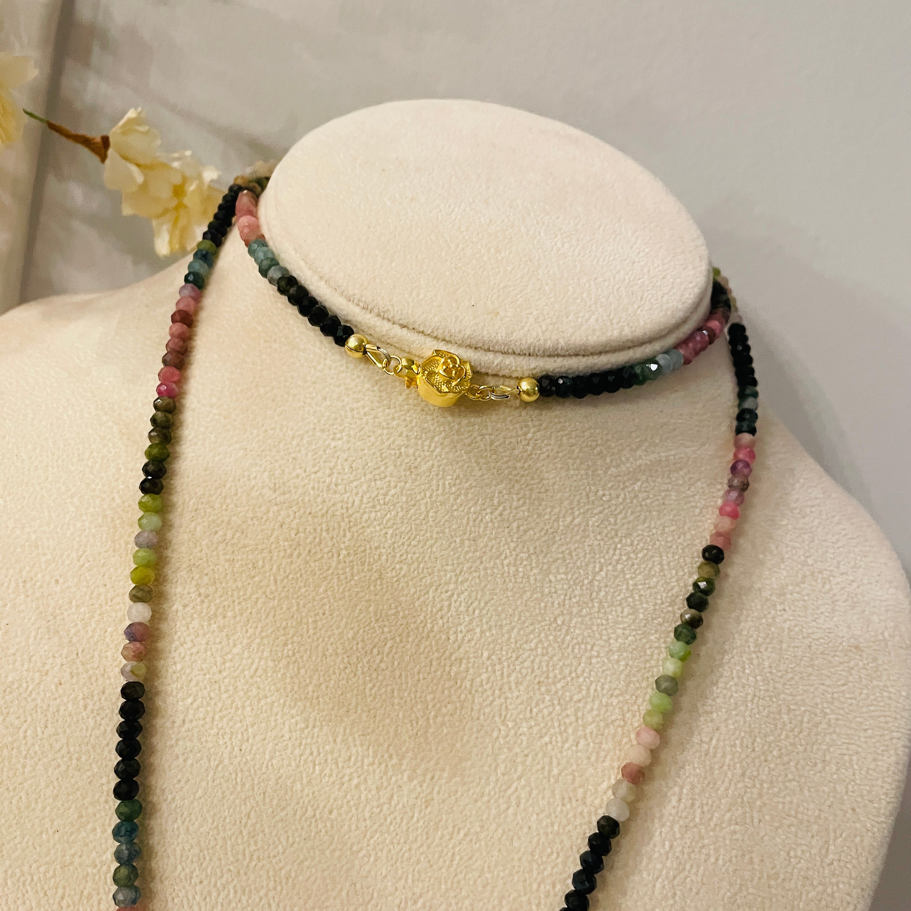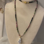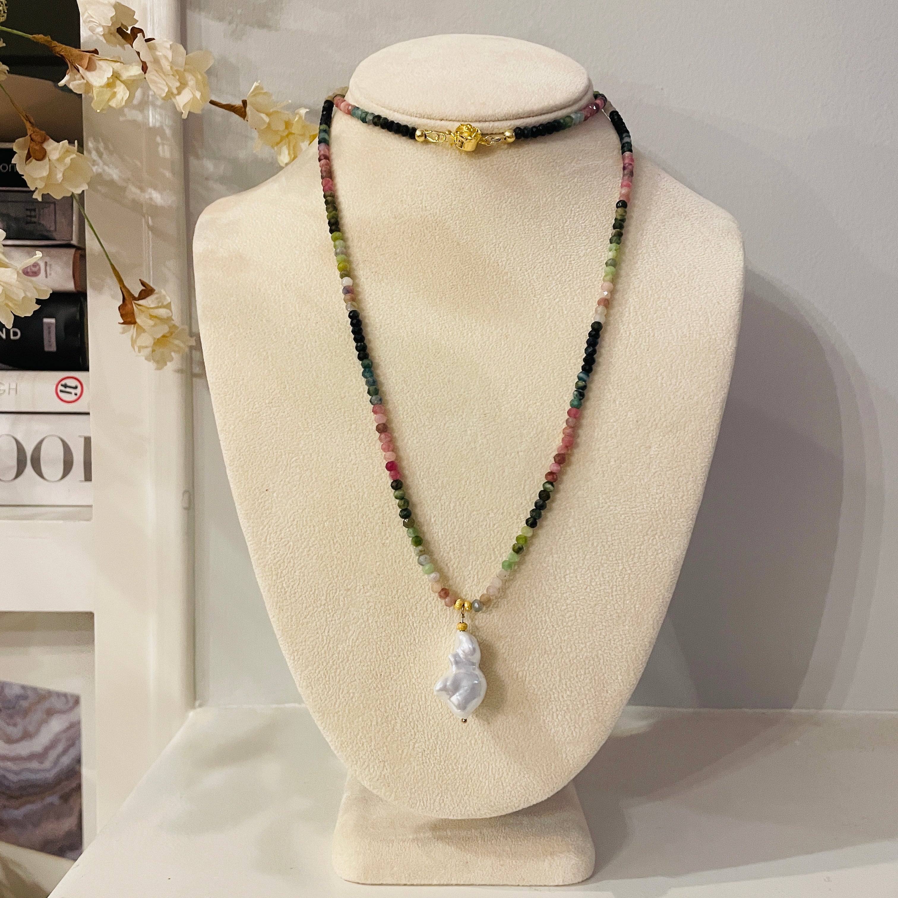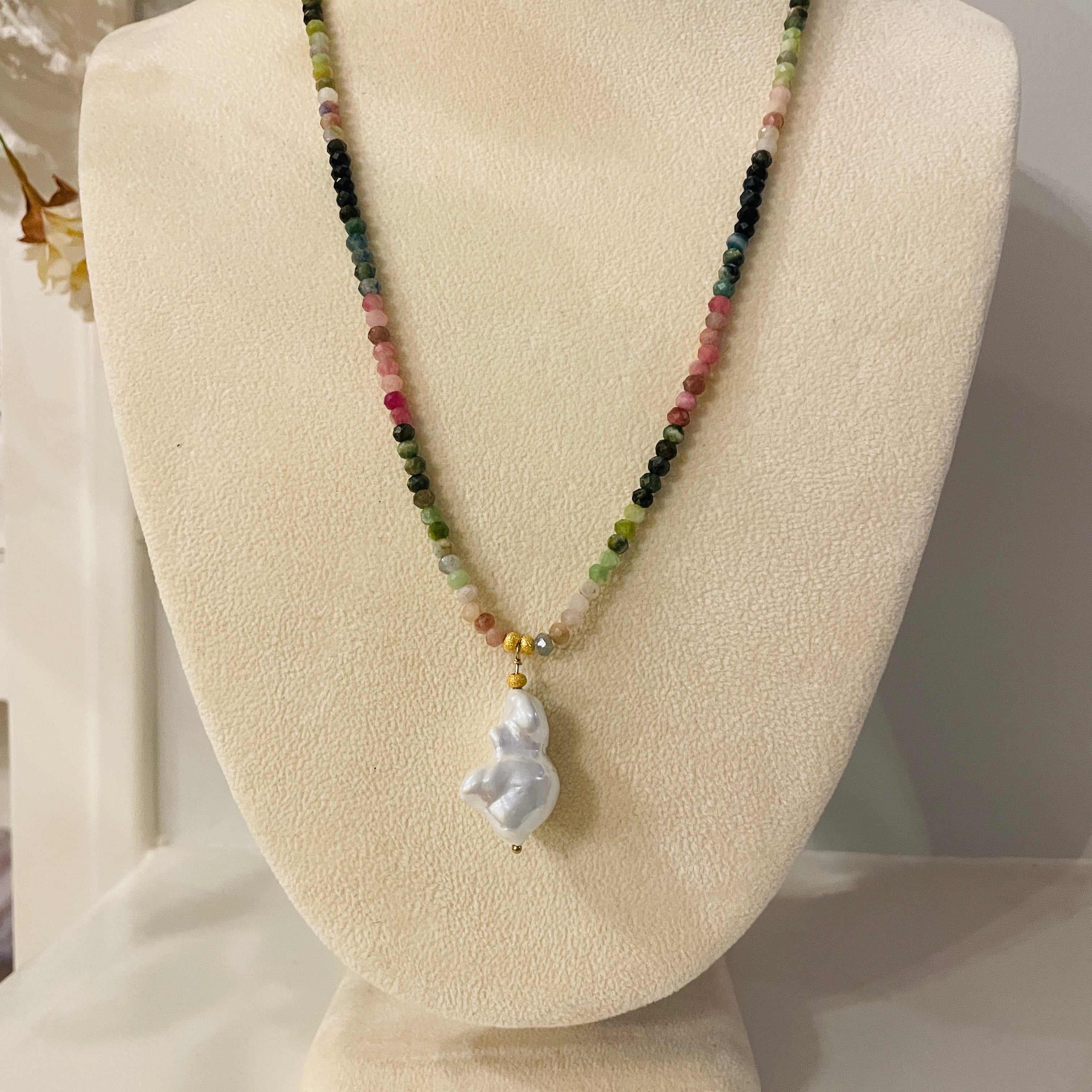 Poppy Long Necklace with Tourmaline and Keshi Pearl