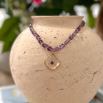 Sophisticated and luminous, the Vivienne Necklace brings together the regal beauty of amethyst with the warmth of gold. Faceted amethyst beads are strung with gold-filled accents, their rich violet tones glowing with depth and elegance.
