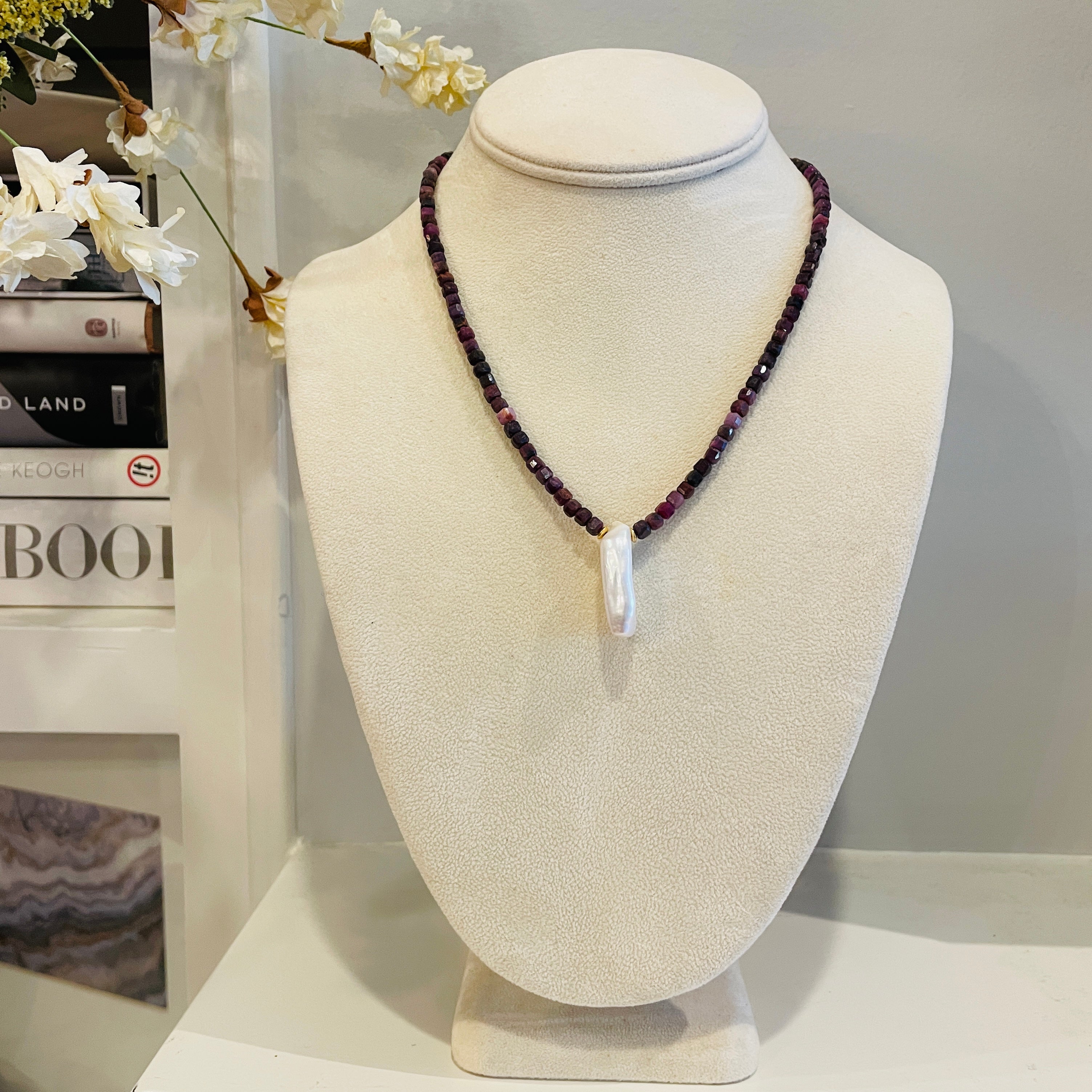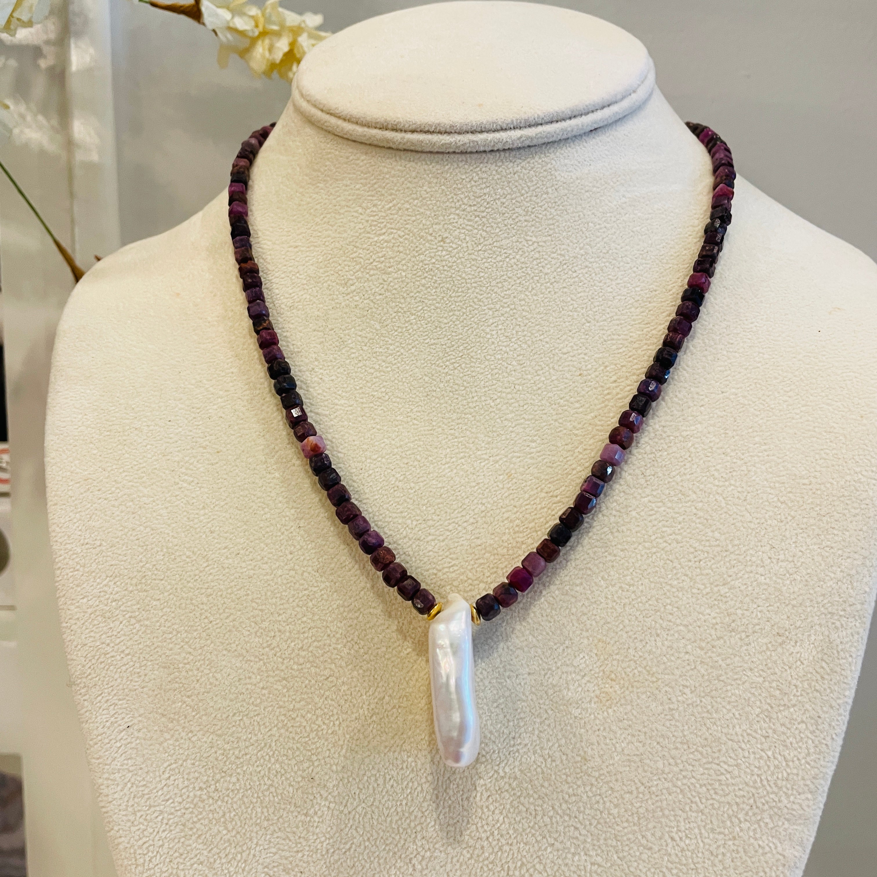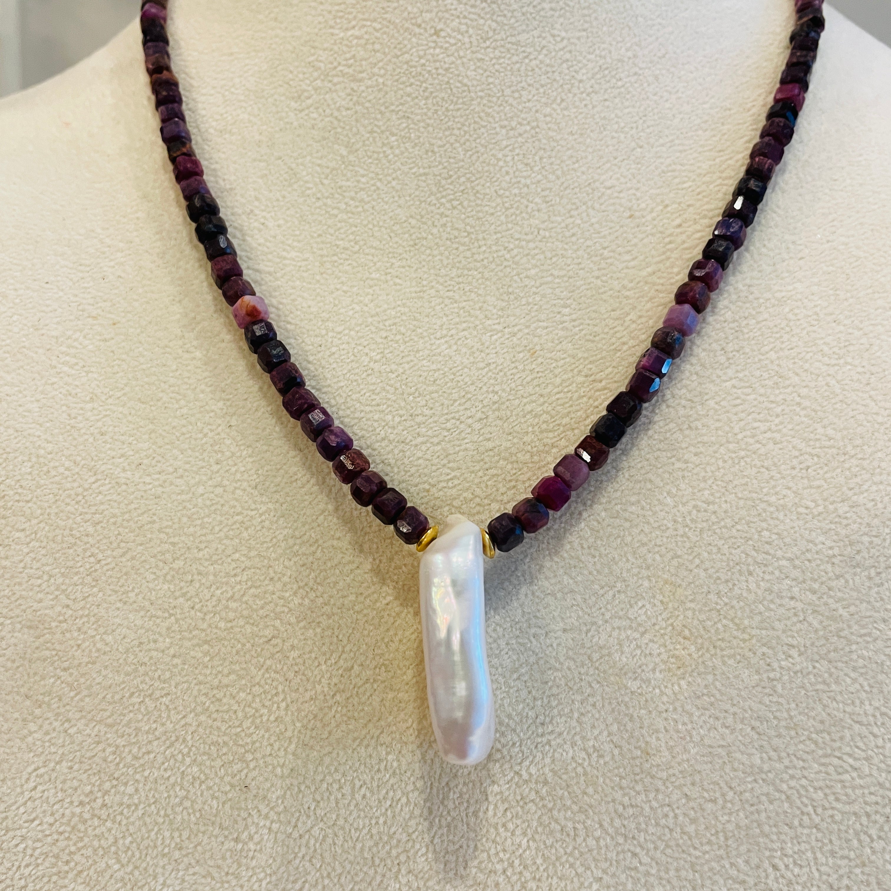 Zahara Necklace with Ruby and Pearl