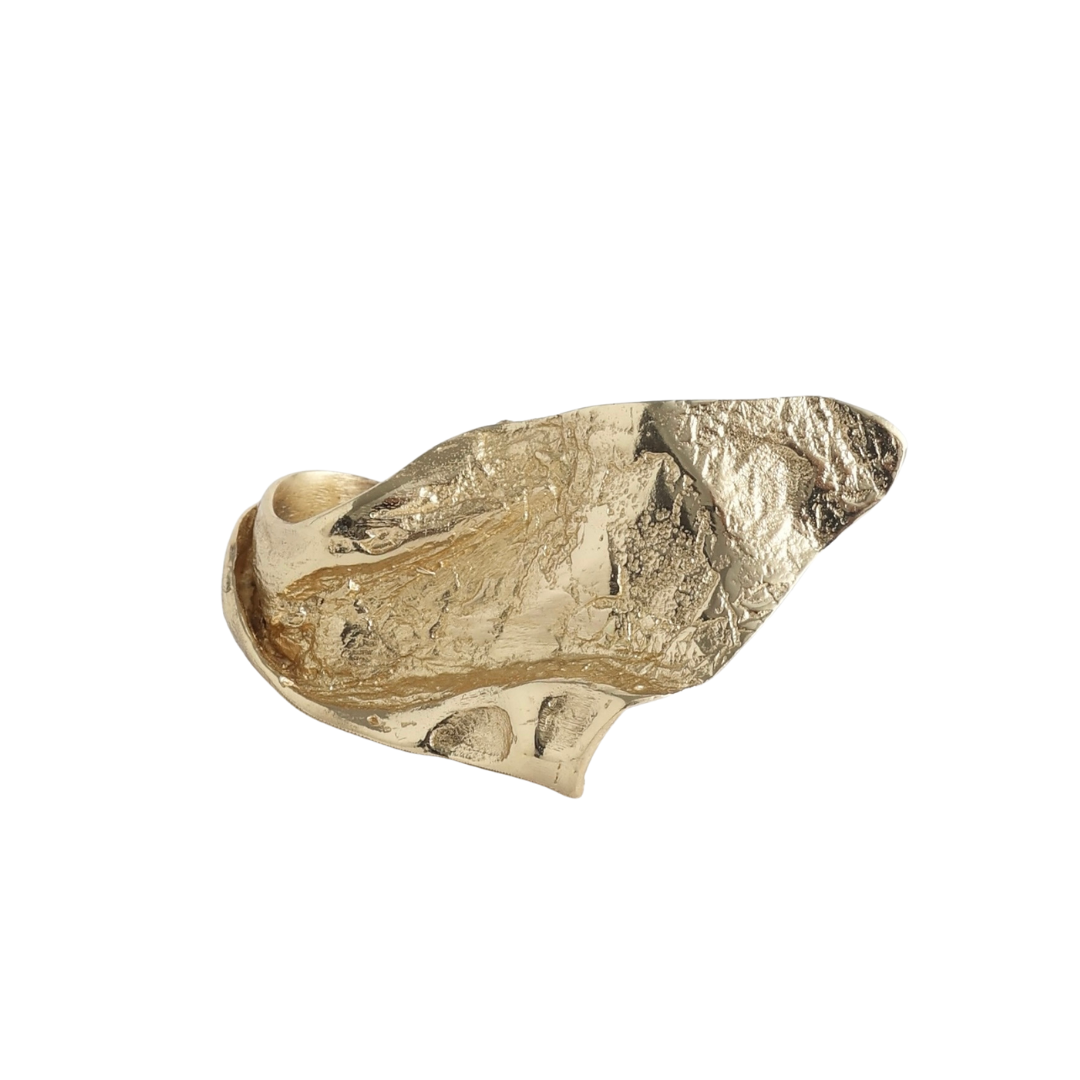 Sculptural and soulful, the Paloma Ring is shaped by organic curves and textured surfaces that feel both ancient and modern. Cast in warm, golden brass, its fluid silhouette wraps the finger like a soft fold of metal—imperfect, expressive, alive.