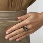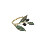 Inspired by the quiet beauty of Mediterranean olive branches, the Olive Hand-Painted Ring brings a touch of nature to the hand in a delicate sculptural form. Slender brass branches extend gracefully across the finger, adorned with small black olive fruits and softly textured leaves finished with subtle hand-painted green accents.