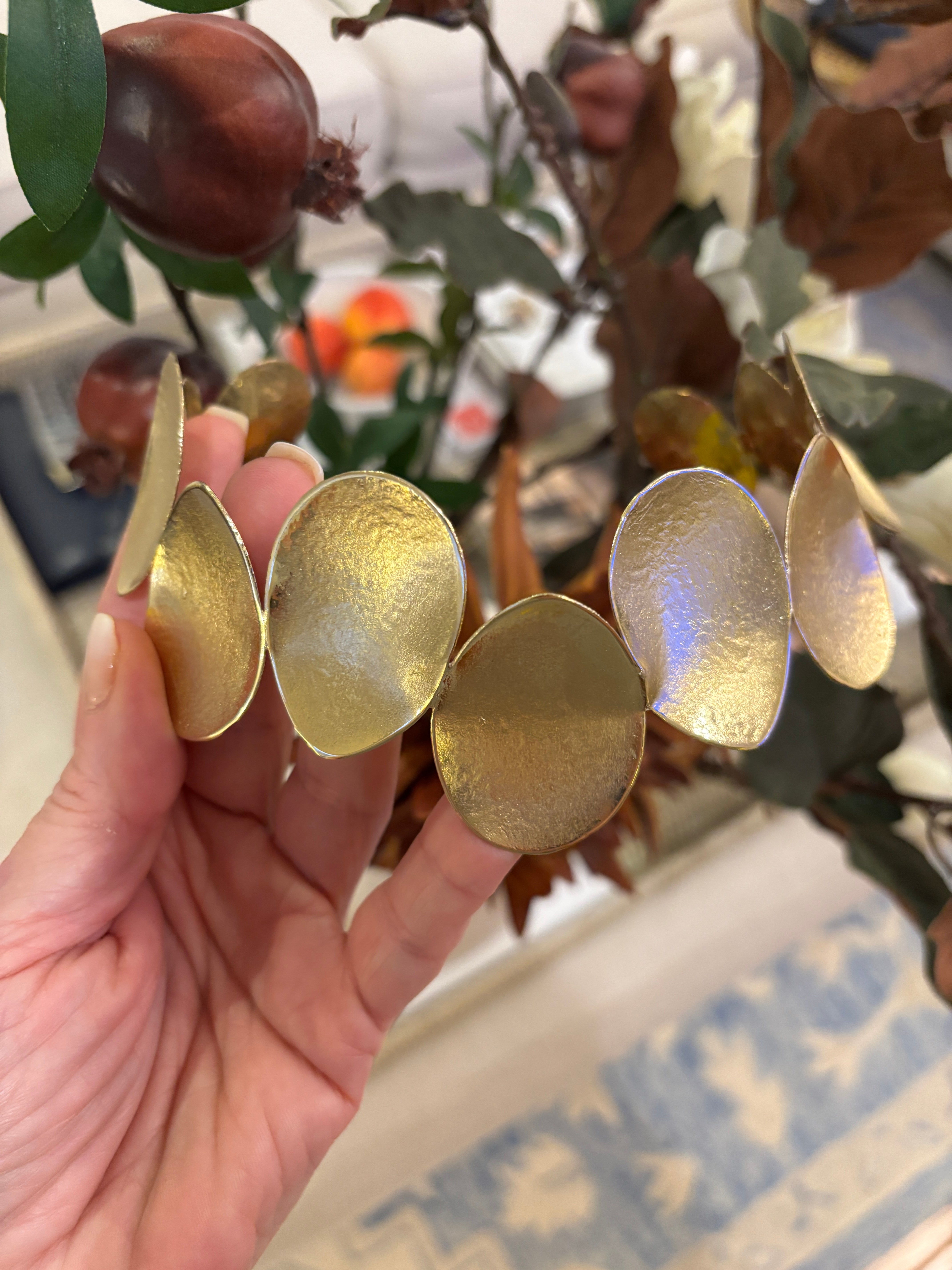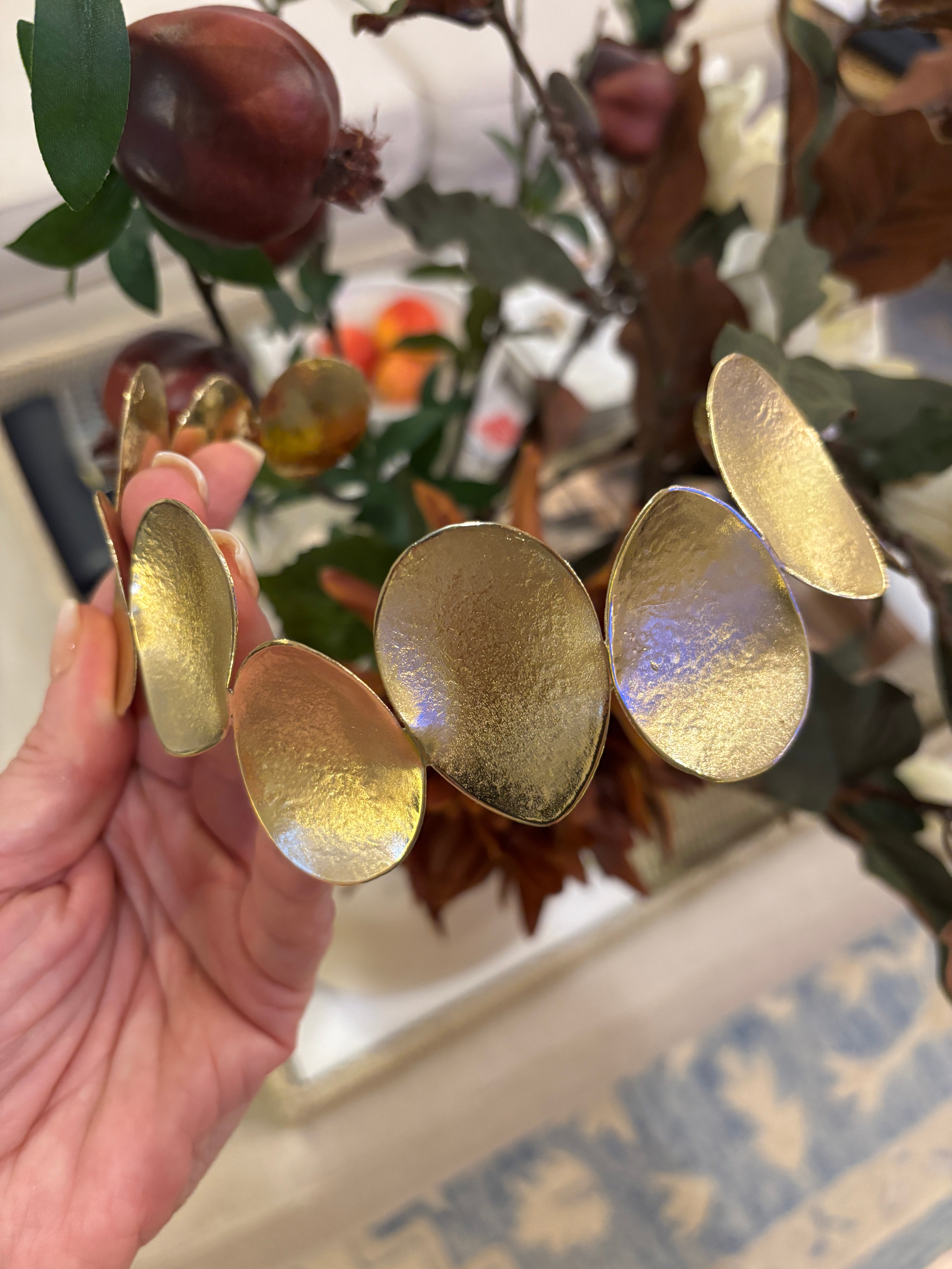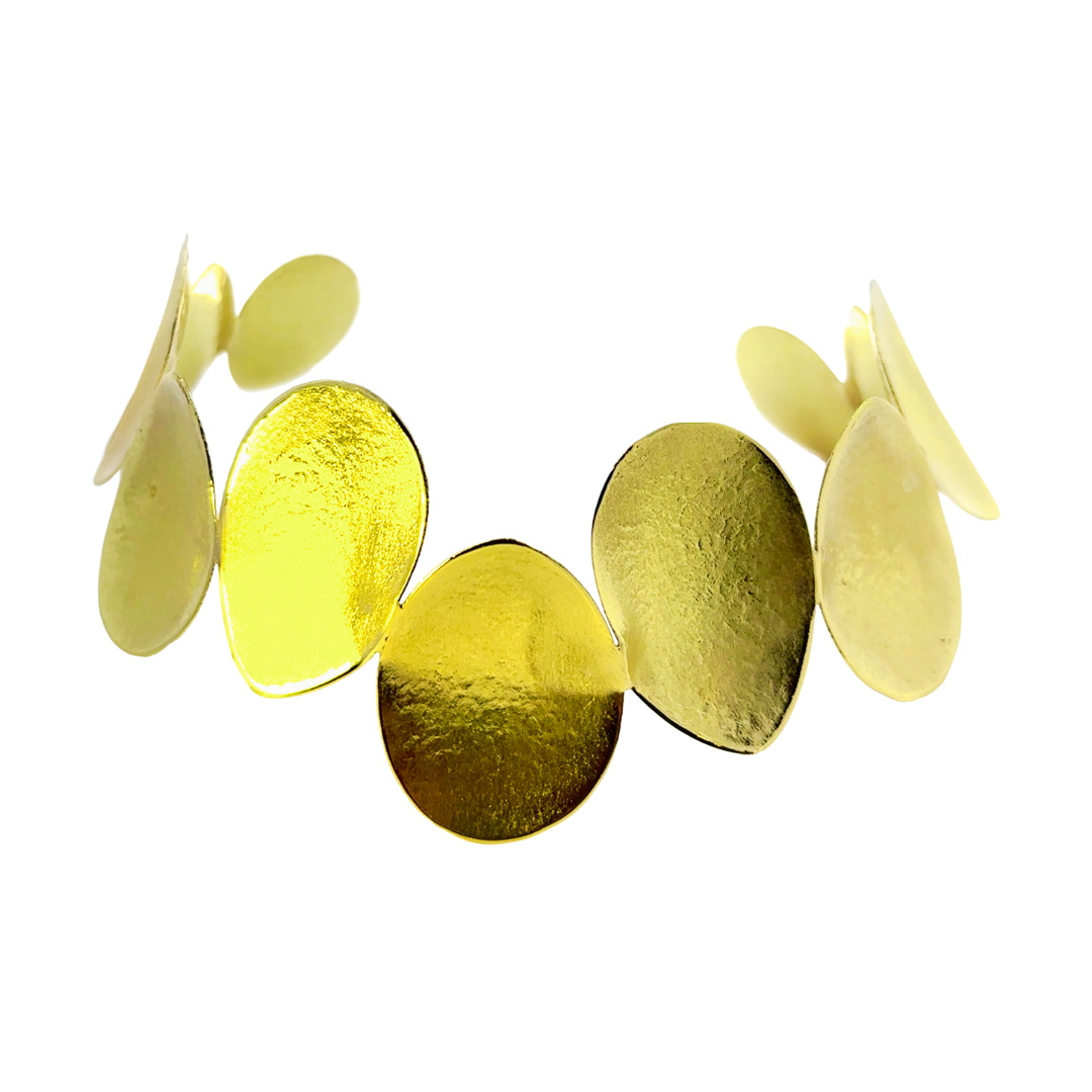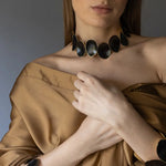 A radiant ode to unity, the Circles of Trust Choker showcases overlapping brass circles in a warm, golden finish. Its sculptural silhouette sits gracefully at the neckline, offering a striking focal point for any ensemble. A modern statement piece that effortlessly combines minimalism with a hint of bold elegance.