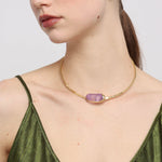 A graceful fusion of modern design and soft color, the Violetta Bloom Choker features a gently curved brass band adorned with a subtle violet resin accent. Its minimalist silhouette rests comfortably at the neck, while the hypoallergenic, nickel-free construction ensures lasting wear. Perfect for adding a hint of dreamy elegance to any ensemble.