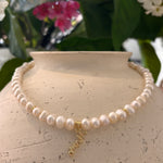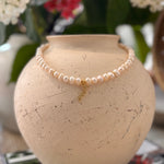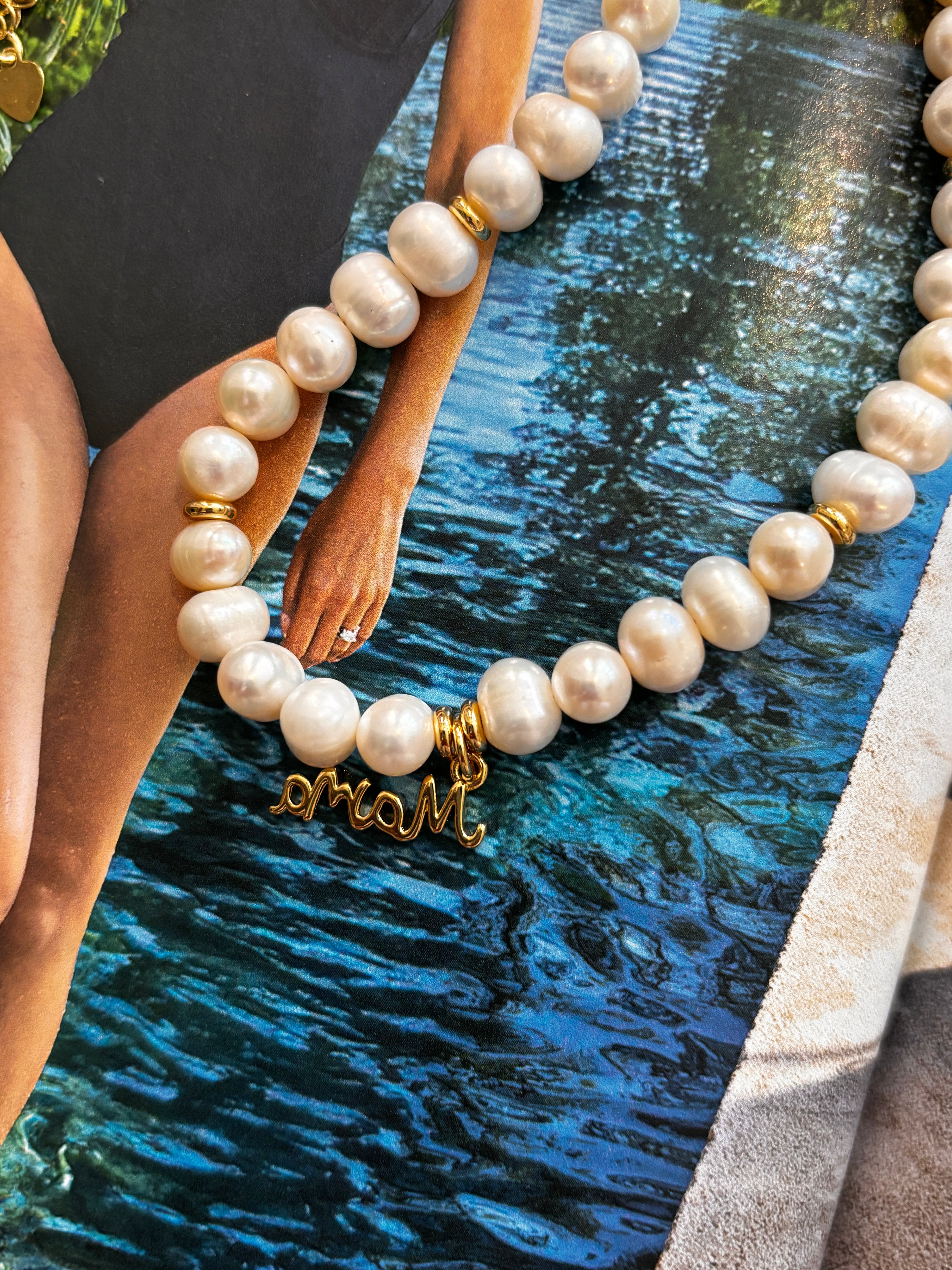 The Élise Mama Necklace is a luminous celebration of love and legacy. Hand-strung natural freshwater pearls — each glowing with soft, organic luster — are accented by gold-filled beads for a touch of radiance. At its heart, a delicate gold-filled mama charm adds warmth and meaning, making this piece a keepsake to treasure.