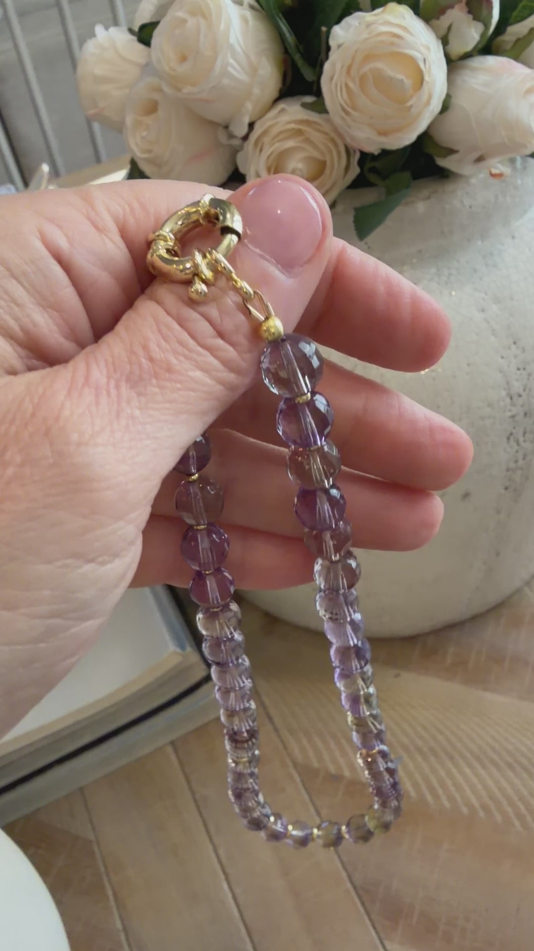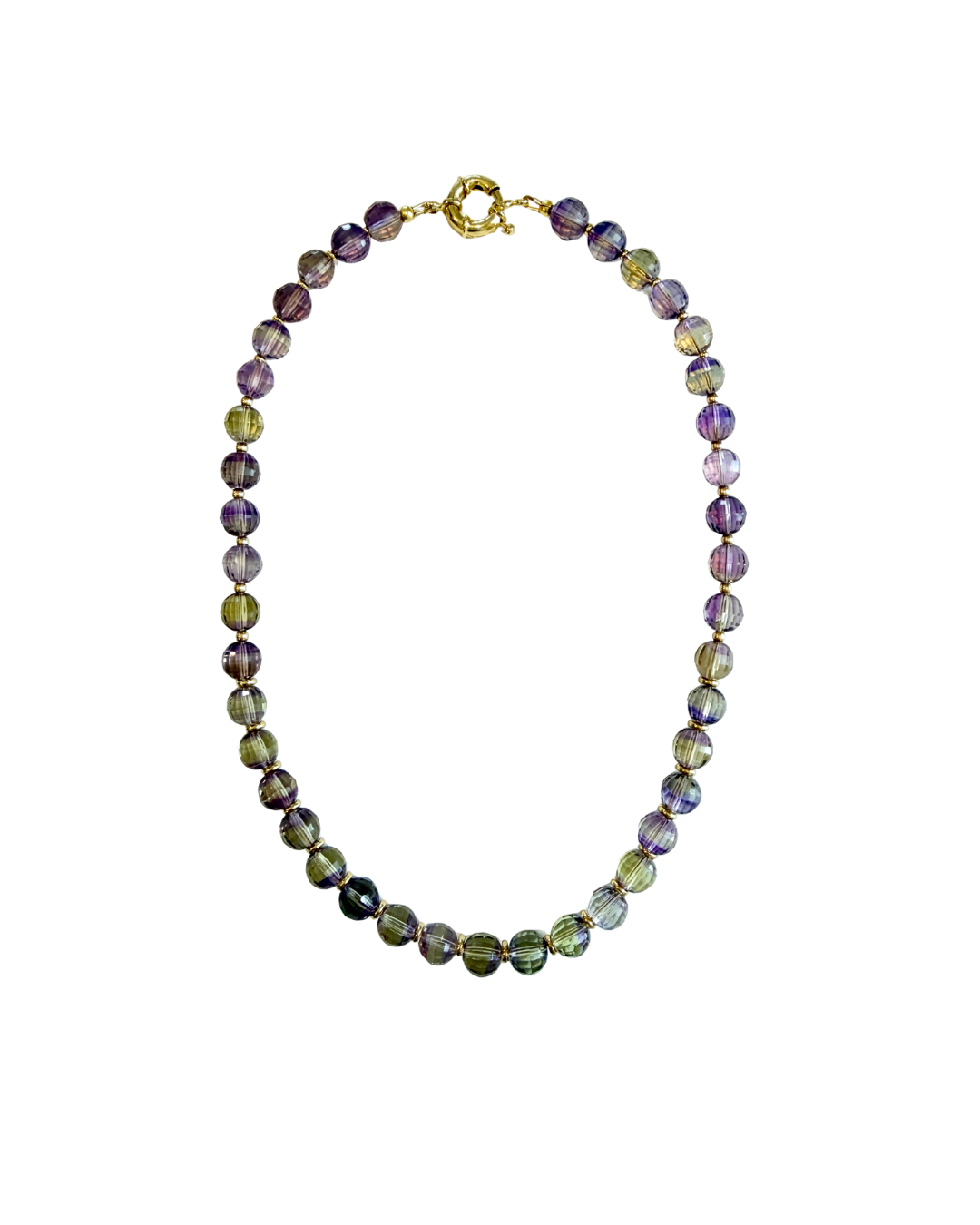 Handcrafted and one of a kind, the Franca Necklace features natural Ametrine, a rare gemstone found in commercial quantities at only one mine in the world. Each stone holds both amethyst and citrine within a single crystal, creating soft shifts of violet and warm gold — no two ever alike.