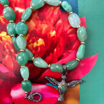 Vibrant and full of presence, La Muse Verte is a showpiece for the true collector. A strand of polished chrysoprase nuggets glows in soft, luminous greens — each one spaced with delicate gold-filled accents to bring warmth and rhythm to the composition.
