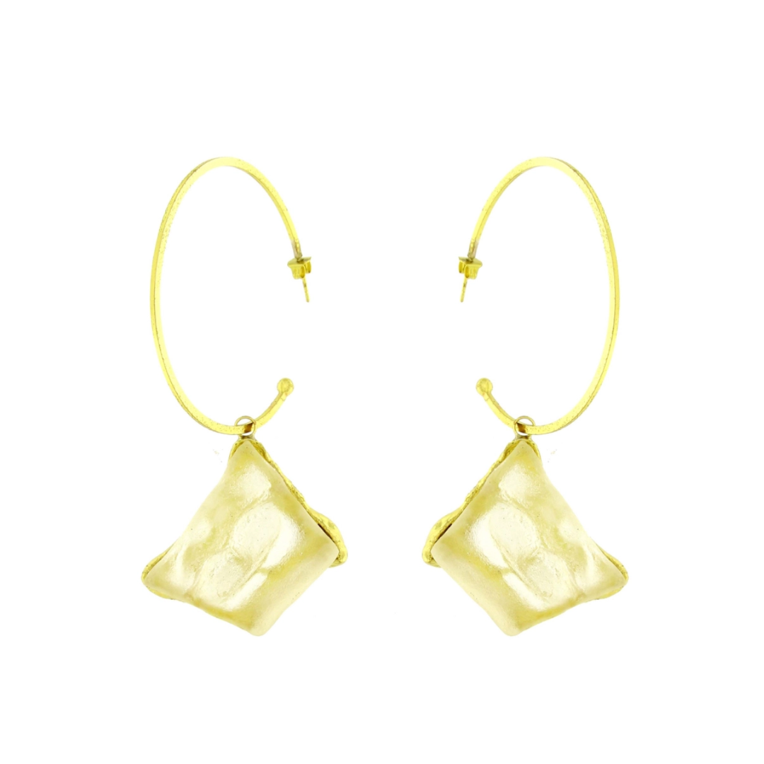 Fluid, sculptural, and undeniably expressive—these earrings reimagine the human form with a surrealist twist. Featuring pillowy lips sculpted in resin and suspended from golden hoops, they’re an ode to quiet sensuality and playful form.