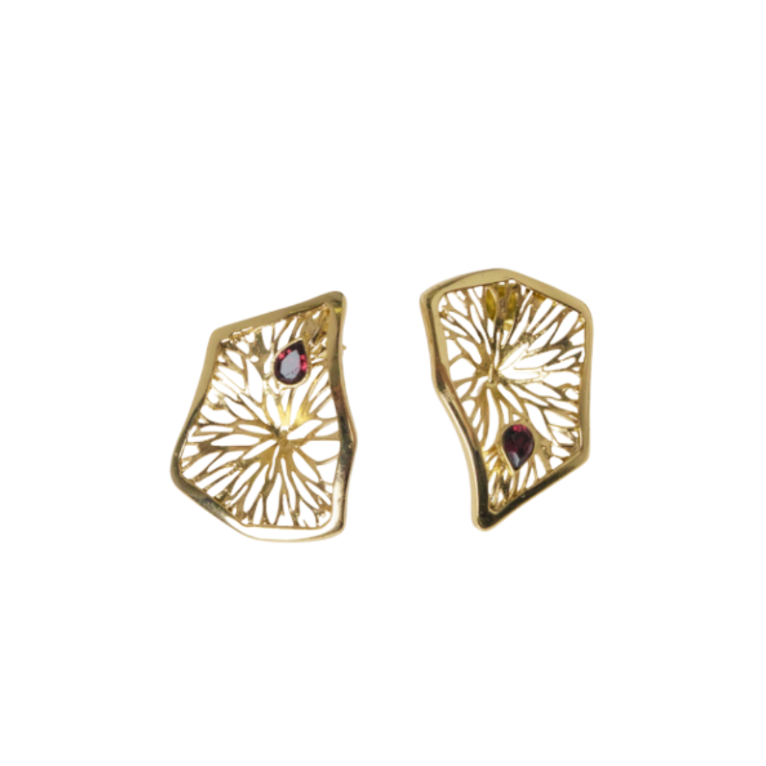 The Amara Stud Earrings feature a bold yet wearable silhouette, where brass filigree meets a single teardrop-cut amethyst crystal. Lightweight but impactful, these earrings bring a touch of artful drama to both day and evening looks.