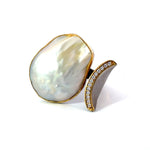 18K gold-plated sterling silver sculptural ring, showcasing a stunning large baroque pearl—elegant, organic, and timeless.