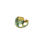 The Cassia Ring carries the elegance of old-world treasures with a modern edge. Its sculptural brass band, finished with a green patina, glows with vintage character. Sparkling white crystals sit within the textured openwork design, adding light and refinement to the bold silhouette. A timeless piece of wearable art, equally striking on its own or paired with its matching earrings.