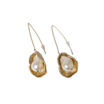 The Lucine Earrings move like whispers of the sea. Baroque pearls, each one wild and irregular, are cradled in molten brass shells that seem to ripple as they catch the light.